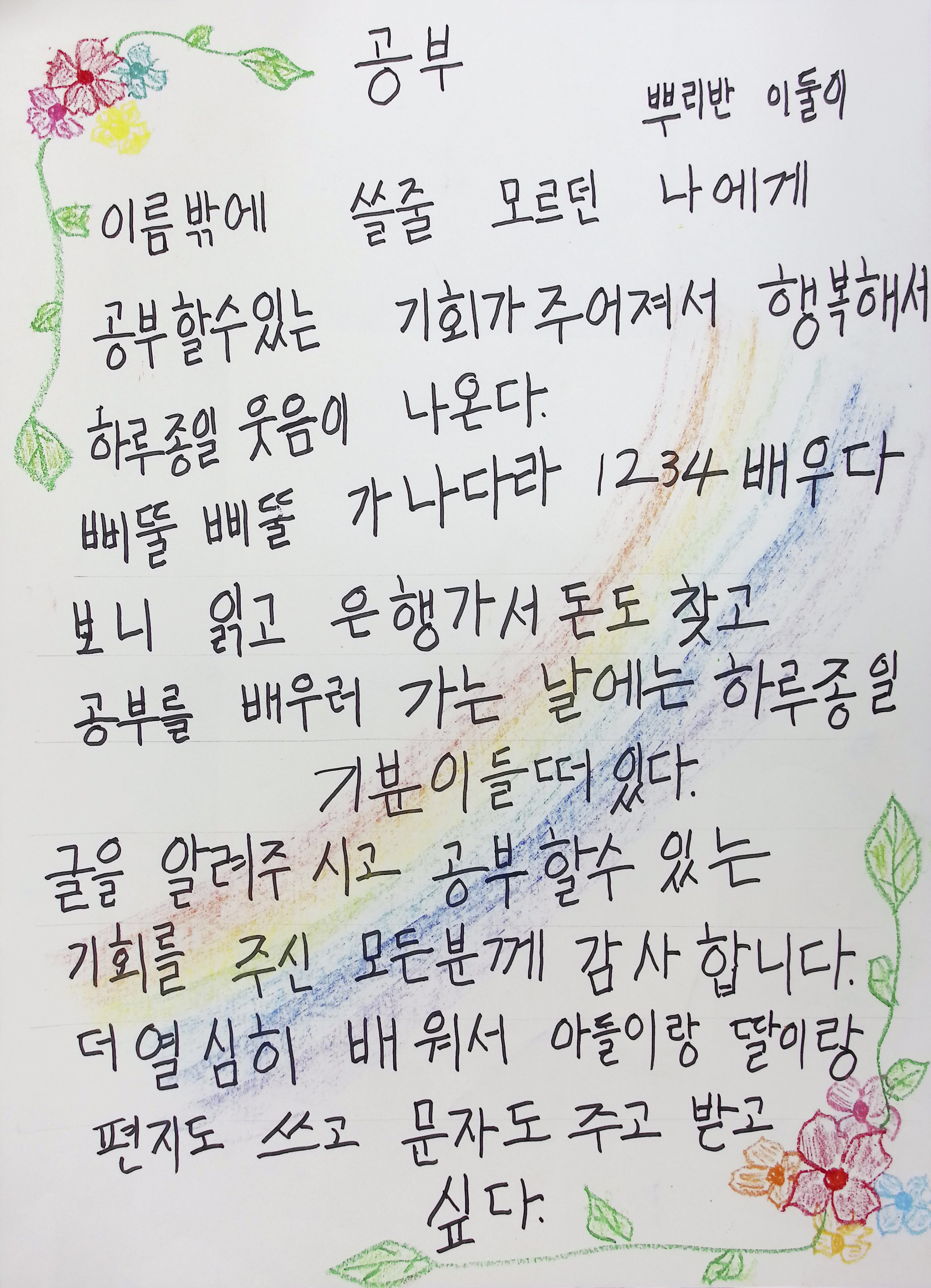 공부 할 수 있는 모든 것에 감사하는 마음을 글로 표현한 아름다운
