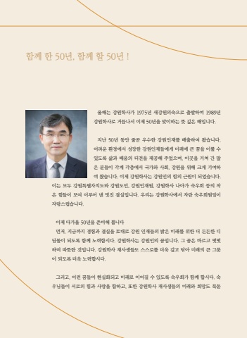 %ud568%uaed8 %ud55c 50%ub144, %ud568%uaed8 %ud560 50%ub144 !%uc62c%ud574%ub294 %uac15%uc6d0%ud559%uc0ac%uac00 1975%ub144 %uc0c8%uac15%uc6d0%uc758%uc219%uc73c%ub85c %ucd9c%ubc1c%ud558%uc5ec 1989%ub144 %uac15%uc6d0%ud559%uc0ac%ub85c %uac70%ub4ed%ub098%uc11c %uc774%uc81c 50%ub144%uc744 %ub9de%uc774%ud558%ub294 %ub73b %uae4a%uc740 %ud574%uc785%ub2c8%ub2e4.%uc9c0%ub09c 50%ub144 %ub3d9%uc548 %uc904%uace7 %uc6b0%uc218%ud55c %uac15%uc6d0%uc778%uc7ac%ub97c %ubc30%ucd9c%ud558%uc5ec %uc654%uc2b5%ub2c8%ub2e4. %uc5b4%ub824%uc6b4 %ud658%uacbd%uc5d0%uc11c %uc131%uc7a5%ud55c %uac15%uc6d0%uc778%uc7ac%ub4e4%uc5d0%uac8c %ubbf8%ub798%uc5d0 %ud070 %uafc8%uc744 %uc774%ub8f0 %uc218 %uc788%ub3c4%ub85d %uc0b6%uacfc %ubc30%uc6c0%uc758 %ud130%uc804%uc744 %uc81c%uacf5%ud574 %uc8fc%uc5c8%uc73c%uba70, %uc774%uacf3%uc744 %uac70%uccd0 %uac04 %ub9ce%uc740 %ubd84%ub4e4%uc774 %uac01%uacc4 %uac01%uce35%uc5d0%uc11c %uad6d%uac00%uc640 %uc0ac%ud68c, %uac15%uc6d0%uc744 %uc704%ud574 %ud06c%uac8c %uae30%uc5ec%ud558%uc5ec %uc654%uc2b5%ub2c8%ub2e4. %uc774%uc81c %uac15%uc6d0%ud559%uc0ac%ub294 %uac15%uc6d0%uc778%uc758 %ud798%uc758 %uadfc%uc6d0%uc774 %ub418%uc5c8%uc2b5%ub2c8%ub2e4. %uc774%ub294 %ubaa8%ub450 %uac15%uc6d0%ud2b9%ubcc4%uc790%uce58%ub3c4%uc640 %uac15%uc6d0%ub3c4%ubbfc, %uac15%uc6d0%uc778%uc7ac%uc6d0, %uac15%uc6d0%ud559%uc0ac %ub098%uc544%uac00 %uc219%uc6b0%ud68c %ub4f1%uc758 %uc791%uc740 %ud798%ub4e4%uc774 %ubaa8%uc5ec %uc774%ub8e8%uc5b4 %ub0b8 %uba4b%uc9c4 %uacb0%uc2e4%uc785%ub2c8%ub2e4. %uc6b0%ub9ac%ub294 %uac15%uc6d0%ud559%uc0ac%uc5d0%uc11c %uc790%ub780 %uc219%uc6b0%ud68c%uc6d0%uc784%uc774 %uc790%ub791%uc2a4%ub7fd%uc2b5%ub2c8%ub2e4. %uc774%uc81c %ub2e4%uac00%uc62c 50%ub144%uc744 %uc900%ube44%ud574 %ubd05%ub2c8%ub2e4%uba3c%uc800, %uc9c0%uae08%uae4c%uc9c0 %uacbd%ud5d8%uacfc %uacb0%uc2e4%uc744 %ud1a0%ub300%ub85c %uac15%uc6d0 %uc778%uc7ac%ub4e4%uc758 %ubc1d%uc740 %ubbf8%ub798%ub97c %uc704%ud55c %ub354 %ub4e0%ub4e0%ud55c %ub514%ub524%ub3cc%uc774 %ub418%ub3c4%ub85d %ud568%uaed8 %ub178%ub825%ud569%uc2dc%ub2e4. %uac15%uc6d0%ud559%uc0ac%ub294 %uac15%uc6d0%uc778%uc758 %uafc8%uc785%ub2c8%ub2e4. %uadf8 %uafc8%uc740 %ubc14%ub974%uace0 %ub5b3%ub5b3%ud558%uba70 %ub530%ub73b%ud55c %uac83%uc785%ub2c8%ub2e4. %uac15%uc6d0%ud559%uc0ac %uc7ac%uc0ac%uc0dd%ub4e4%ub3c4 %uc2a4%uc2a4%ub85c%ub97c %ub354%uc6b1 %uac08%uace0 %ub2e6%uc544 %ubbf8%ub798%uc758 %ud070 %uadf8%ub987%uc774 %ub418%ub3c4%ub85d %ub354%uc6b1 %ub178%ub825%ud569%uc2dc%ub2e4. %uadf8%ub9ac%uace0, %uc774%ub7f0 %uafc8%ub4e4%uc774 %ud604%uc2e4%ud654%ub418%uace0 %ubbf8%ub798%ub85c %uc774%uc5b4%uc9c8 %uc218 %uc788%ub3c4%ub85d %uc219%uc6b0%ud68c%uac00 %ud568%uaed8 %ud569%uc2dc%ub2e4. %uc219%uc6b0%ub2d8%ub4e4%uc774 %uc11c%ub85c%uc758 %ud798%uacfc %uc0ac%ub791%uc744 %ud569%ud558%uace0, %ub610%ud55c %uac15%uc6d0%ud559%uc0ac %uc7ac%uc0ac%uc0dd%ub4e4%uc758 %ubbf8%ub798%uc640 %ud76c%ub9dd%ub3c4 %ubd81%ub3cb