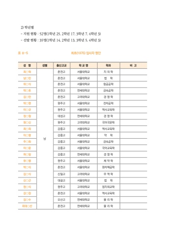 2) %ud559%ub144%ubcc4- %uc9c0%uc6d0 %ud604%ud669 : 52%uba85(1%ud559%ub144 25, 2%ud559%ub144 17, 3%ud559%ub144 7, 4%ud559%ub144 3)- %uc120%ubc1c %ud604%ud669 : 35%uba85(1%ud559%ub144 14, 2%ud559%ub144 13, 3%ud559%ub144 5, 4%ud559%ub144 3)%ud45c %u2162-5%ucd5c%ucd08(1975) %uc785%uc0ac%uc790 %uba85%ub2e8%uc131 %uba85%uc131%ubcc4%ucd9c%uc2e0%uace0%uad50%ud559 %uad50 %uba85%ud559%uacfc%ube44 %uace0%ucd5c%u25cb%ud601%ub0a8%ucd98%ucc9c%uace0%uc11c%uc6b8%ub300%ud559%uad50%uce58 %uc758 %ud559%ub0a8%u25cb%ubbfc%ucd98%ucc9c%uace0%uc11c%uc6b8%ub300%ud559%uad50%ubc95 %ud559%uc704%u25cb%uc2dd%ucd98%ucc9c%uace0%uc11c%uc6b8%ub300%ud559%uad50%ud56d%uacf5%uacf5%ud559%ubc15%u25cb%ud638%ucd98%ucc9c%uace0%uc5f0%uc138%ub300%ud559%uad50%uae08%uc18d%uacf5%ud559%uae40%u25cb%ub9cc%ucd98%ucc9c%uace0%uace0%ub824%ub300%ud559%uad50%uacbd %uc601 %ud559%ubc15%u25cb%uba85%uc6d0%uc8fc%uace0%uc11c%uc6b8%ub300%ud559%uad50%uc804%uc790%uacf5%ud559%uc774%u25cb%uaddc%uc6d0%uc8fc%uace0%uc11c%uc6b8%ub300%ud559%uad50%uc5ed%uc0ac%uad50%uc721%ud559%uc815%u25cb%ucca0%ub300%uc131%uace0%uc5f0%uc138%ub300%ud559%uad50%uacbd %uc601 %ud559%uc6d0%u25cb%uc2e0%uc6d0%uc8fc%uace0%uace0%ub824%ub300%ud559%uad50%uad6d%uc5b4%uad6d%ubb38%ud559%ucd5c%u25cb%ud76c%uac15%ub989%uace0%uc11c%uc6b8%ub300%ud559%uad50%uc5ed%uc0ac%uad50%uc721%ud559%uc774%u25cb%uc5f4%uac15%ub989%uace0%uc11c%uc6b8%ub300%ud559%uad50%uc57d %ud559%uc8fc%u25cb%ud654%uac15%ub989%uace0%uc11c%uc6b8%ub300%ud559%uad50%uae08%uc18d%uacf5%ud559%uc774%u25cb%ubb38%uac15%ub989%uace0%uc11c%uc6b8%ub300%ud559%uad50%uad6d%uc5b4%uad50%uc721%ud559%ud5c8%u25cb%uc77c%uac15%ub989%uace0%uc5f0%uc138%ub300%ud559%uad50%uacbd %uc601 %ud559%uc720%u25cb%uc5f4%uc6d0%uc8fc%uace0%uc11c%uc6b8%ub300%ud559%uad50%uc81c %uc57d %ud559%ubc15%u25cb%uc2dd%ucd98%ucc9c%uace0%uc11c%uc6b8%ub300%ud559%uad50%uc6d0%uc790%ud575%uacf5%ud559%uae40%u25cb%uc2dd%uc2e0%uc77c%uace0%uace0%ub824%ub300%ud559%uad50%ubb34 %uc5ed %ud559%uc2e0%u25cb%uadfc%ub300%uad11%uace0%uc11c%uc6b8%ub300%ud559%uad50%ubc95 %ud559%uc6d0%u25cb%uc2dd%uc6d0%uc8fc%uace0%uace0%ub824%ub300%ud559%uad50%uc815%uce58%uc678%uad50%ud559%uac15%u25cb%ucc3d%ucd98%ucc9c%uace0%uc11c%uc6b8%ub300%ud559%uad50%uc5ed%uc0ac%uad50%uc721%ud559%uae40%u25cb%uc218%uc624%uc0b0%uace0%uc5f0%uc138%ub300%ud559%uad50%ubb3c %ub9ac %ud559%ucd5c%ub300%u25cb%uc120%ucd98%ucc9c%uace0%uc5f0%uc138%ub300%ud559%uad50%ubb3c %ub9ac %ud559