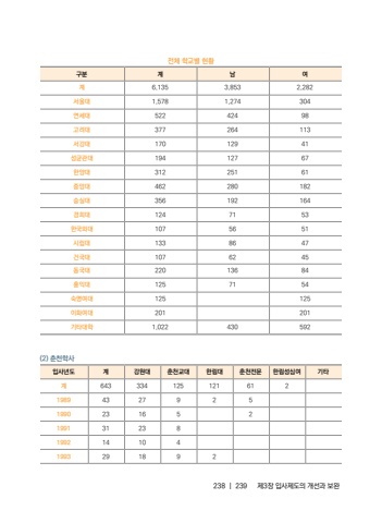 238 |239%uc81c3%uc7a5 %uc785%uc0ac%uc81c%ub3c4%uc758 %uac1c%uc120%uacfc %ubcf4%uc644%uc804%uccb4 %ud559%uad50%ubcc4 %ud604%ud669%uad6c%ubd84%uacc4%ub0a8%uc5ec%uacc46,1353,8532,282%uc11c%uc6b8%ub3001,5781,274304%uc5f0%uc138%ub30052242498%uace0%ub824%ub300377264113%uc11c%uac15%ub30017012941%uc131%uade0%uad00%ub30019412767%ud55c%uc591%ub30031225161%uc911%uc559%ub300462280182%uc22d%uc2e4%ub300356192164%uacbd%ud76c%ub3001247153%ud55c%uad6d%uc678%ub3001075651%uc2dc%ub9bd%ub3001338647%uac74%uad6d%ub3001076245%ub3d9%uad6d%ub30022013684%ud64d%uc775%ub3001257154%uc219%uba85%uc5ec%ub300125125%uc774%ud654%uc5ec%ub300201201%uae30%ud0c0%ub300%ud5591,022430592(2) %ucd98%ucc9c%ud559%uc0ac%uc785%uc0ac%ub144%ub3c4%uacc4%uac15%uc6d0%ub300%ucd98%ucc9c%uad50%ub300%ud55c%ub9bc%ub300%ucd98%ucc9c%uc804%ubb38%ud55c%ub9bc%uc131%uc2ec%uc5ec%uae30%ud0c0%uacc46433341251216121989432792519902316521991312381992141041993291892