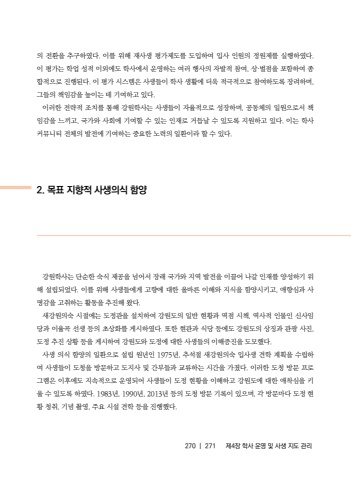 270 |271%uc81c4%uc7a5 %ud559%uc0ac %uc6b4%uc601 %ubc0f %uc0ac%uc0dd %uc9c0%ub3c4 %uad00%ub9ac%uc758 %uc804%ud658%uc744 %ucd94%uad6c%ud558%uc600%ub2e4. %uc774%ub97c %uc704%ud574 %uc7ac%uc0ac%uc0dd %ud3c9%uac00%uc81c%ub3c4%ub97c %ub3c4%uc785%ud558%uc5ec %uc785%uc0ac %uc778%uc6d0%uc758 %uc815%uc6d0%uc81c%ub97c %uc2e4%ud589%ud558%uc600%ub2e4. %uc774 %ud3c9%uac00%ub294 %ud559%uc5c5 %uc131%uc801 %uc774%uc678%uc5d0%ub3c4 %ud559%uc0ac%uc5d0%uc11c %uc6b4%uc601%ud558%ub294 %uc5ec%ub7ec %ud589%uc0ac%uc758 %uc790%ubc1c%uc801 %ucc38%uc5ec, %uc0c1%u00b7%ubc8c%uc810%uc744 %ud3ec%ud568%ud558%uc5ec %uc885%ud569%uc801%uc73c%ub85c %uc9c4%ud589%ub41c%ub2e4. %uc774 %ud3c9%uac00 %uc2dc%uc2a4%ud15c%uc740 %uc0ac%uc0dd%ub4e4%uc774 %ud559%uc0ac %uc0dd%ud65c%uc5d0 %ub354%uc6b1 %uc801%uadf9%uc801%uc73c%ub85c %ucc38%uc5ec%ud558%ub3c4%ub85d %uc7a5%ub824%ud558%uba70, %uadf8%ub4e4%uc758 %ucc45%uc784%uac10%uc744 %ub192%uc774%ub294 %ub370 %uae30%uc5ec%ud558%uace0 %uc788%ub2e4.%uc774%ub7ec%ud55c %uc804%ub7b5%uc801 %uc870%uce58%ub97c %ud1b5%ud574 %uac15%uc6d0%ud559%uc0ac%ub294 %uc0ac%uc0dd%ub4e4%uc774 %uc790%uc728%uc801%uc73c%ub85c %uc131%uc7a5%ud558%uba70, %uacf5%ub3d9%uccb4%uc758 %uc77c%uc6d0%uc73c%ub85c%uc11c %ucc45%uc784%uac10%uc744 %ub290%ub07c%uace0, %uad6d%uac00%uc640 %uc0ac%ud68c%uc5d0 %uae30%uc5ec%ud560 %uc218 %uc788%ub294 %uc778%uc7ac%ub85c %uac70%ub4ed%ub0a0 %uc218 %uc788%ub3c4%ub85d %uc9c0%uc6d0%ud558%uace0 %uc788%ub2e4. %uc774%ub294 %ud559%uc0ac %ucee4%ubba4%ub2c8%ud2f0 %uc804%uccb4%uc758 %ubc1c%uc804%uc5d0 %uae30%uc5ec%ud558%ub294 %uc911%uc694%ud55c %ub178%ub825%uc758 %uc77c%ud658%uc774%ub77c %ud560 %uc218 %uc788%ub2e4.%uac15%uc6d0%ud559%uc0ac%ub294 %ub2e8%uc21c%ud55c %uc219%uc2dd %uc81c%uacf5%uc744 %ub118%uc5b4%uc11c %uc7a5%ub798 %uad6d%uac00%uc640 %uc9c0%uc5ed %ubc1c%uc804%uc744 %uc774%ub04c%uc5b4 %ub098%uac08 %uc778%uc7ac%ub97c %uc591%uc131%ud558%uae30 %uc704%ud574 %uc124%ub9bd%ub418%uc5c8%ub2e4. %uc774%ub97c %uc704%ud574 %uc0ac%uc0dd%ub4e4%uc5d0%uac8c %uace0%ud5a5%uc5d0 %ub300%ud55c %uc62c%ubc14%ub978 %uc774%ud574%uc640 %uc9c0%uc2dd%uc744 %ud568%uc591%uc2dc%ud0a4%uace0, %uc560%ud5a5%uc2ec%uacfc %uc0ac%uba85%uac10%uc744 %uace0%ucde8%ud558%ub294 %ud65c%ub3d9%uc744 %ucd94%uc9c4%ud574 %uc654%ub2e4.%uc0c8%uac15%uc6d0%uc758%uc219 %uc2dc%uc808%uc5d0%ub294 %ub3c4%uc815%uad00%uc744 %uc124%uce58%ud558%uc5ec %uac15%uc6d0%ub3c4%uc758 %uc77c%ubc18 %ud604%ud669%uacfc %uc5ed%uc810 %uc2dc%ucc45, %uc5ed%uc0ac%uc801 %uc778%ubb3c%uc778 %uc2e0%uc0ac%uc784%ub2f9%uacfc %uc774%uc728%uace1 %uc120%uc0dd %ub4f1%uc758 %ucd08%uc0c1%ud654%ub97c %uac8c%uc2dc%ud558%uc600%ub2e4. %ub610%ud55c %ud604%uad00%uacfc %uc2dd%ub2f9 %ub4f1%uc5d0%ub3c4 %uac15%uc6d0%ub3c4%uc758 %uc0c1%uc9d5%uacfc %uad00%uad11 %uc0ac%uc9c4, %ub3c4%uc815 %ucd94%uc9c4 %uc0c1%ud669 %ub4f1%uc744 %uac8c%uc2dc%ud558%uc5ec %uac15%uc6d0%ub3c4%uc640 %ub3c4%uc815%uc5d0 %ub300%ud55c %uc0ac%uc0dd%ub4e4%uc758 %uc774%ud574%uc99d%uc9c4%uc744 %ub3c4%ubaa8%ud588%ub2e4. %uc0ac%uc0dd %uc758%uc2dd %ud568%uc591%uc758 %uc77c%ud658%uc73c%ub85c %uc124%ub9bd %uc6d0%ub144%uc778 1975%ub144, %ucd94%uc11d%uc808 %uc0c8%uac15%uc6d0%uc758%uc219 %uc785%uc0ac%uc0dd %uacac%ud559 %uacc4%ud68d%uc744 %uc218%ub9bd%ud558%uc5ec %uc0ac%uc0dd%ub4e4%uc774 %ub3c4%uccad%uc744 %ubc29%ubb38%ud558%uace0 %ub3c4%uc9c0%uc0ac %ubc0f %uac04%ubd80%ub4e4%uacfc %uad50%ub958%ud558%ub294 %uc2dc%uac04%uc744 %uac00%uc84c%ub2e4. %uc774%ub7ec%ud55c %ub3c4%uccad %ubc29%ubb38 %ud504%ub85c%uadf8%ub7a8%uc740 %uc774%ud6c4%uc5d0%ub3c4 %uc9c0%uc18d%uc801%uc73c%ub85c %uc6b4%uc601%ub418%uc5b4 %uc0ac%uc0dd%ub4e4%uc774 %ub3c4%uc815 %ud604%ud669%uc744 %uc774%ud574%ud558%uace0 %uac15%uc6d0%ub3c4%uc5d0 %ub300%ud55c %uc560%ucc29%uc2ec%uc744 %ud0a4%uc6b8 %uc218 %uc788%ub3c4%ub85d %ud558%uc600%ub2e4. 1983%ub144, 1990%ub144, 2013%ub144 %ub4f1%uc758 %ub3c4%uccad %ubc29%ubb38 %uae30%ub85d%uc774 %uc788%uc73c%uba70, %uac01 %ubc29%ubb38%ub9c8%ub2e4 %ub3c4%uc815 %ud604%ud669 %uccad%ucde8, %uae30%ub150 %ucd2c%uc601, %uc8fc%uc694 %uc2dc%uc124 %uacac%ud559 %ub4f1%uc744 %uc9c4%ud589%ud588%ub2e4.2. %ubaa9%ud45c %uc9c0%ud5a5%uc801 %uc0ac%uc0dd%uc758%uc2dd %ud568%uc591