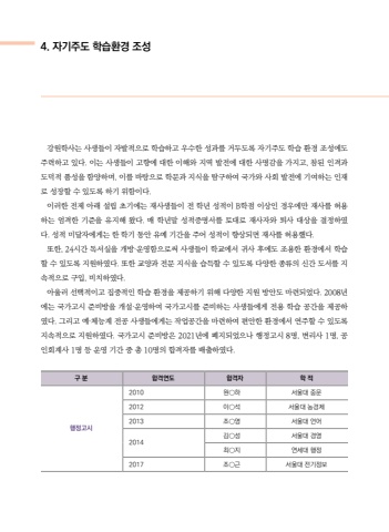 %uac15%uc6d0%ud559%uc0ac%ub294 %uc0ac%uc0dd%ub4e4%uc774 %uc790%ubc1c%uc801%uc73c%ub85c %ud559%uc2b5%ud558%uace0 %uc6b0%uc218%ud55c %uc131%uacfc%ub97c %uac70%ub450%ub3c4%ub85d %uc790%uae30%uc8fc%ub3c4 %ud559%uc2b5 %ud658%uacbd %uc870%uc131%uc5d0%ub3c4 %uc8fc%ub825%ud558%uace0 %uc788%ub2e4. %uc774%ub294 %uc0ac%uc0dd%ub4e4%uc774 %uace0%ud5a5%uc5d0 %ub300%ud55c %uc774%ud574%uc640 %uc9c0%uc5ed %ubc1c%uc804%uc5d0 %ub300%ud55c %uc0ac%uba85%uac10%uc744 %uac00%uc9c0%uace0, %ucc38%ub41c %uc778%uaca9%uacfc %ub3c4%ub355%uc801 %ud488%uc131%uc744 %ud568%uc591%ud558%uba70, %uc774%ub97c %ubc14%ud0d5%uc73c%ub85c %ud559%ubb38%uacfc %uc9c0%uc2dd%uc744 %ud0d0%uad6c%ud558%uc5ec %uad6d%uac00%uc640 %uc0ac%ud68c %ubc1c%uc804%uc5d0 %uae30%uc5ec%ud558%ub294 %uc778%uc7ac%ub85c %uc131%uc7a5%ud560 %uc218 %uc788%ub3c4%ub85d %ud558%uae30 %uc704%ud568%uc774%ub2e4.%uc774%ub7ec%ud55c %uc804%uc81c %uc544%ub798 %uc124%ub9bd %ucd08%uae30%uc5d0%ub294 %uc7ac%uc0ac%uc0dd%ub4e4%uc774 %uc804 %ud559%ub144 %uc131%uc801%uc774 B%ud559%uc810 %uc774%uc0c1%uc778 %uacbd%uc6b0%uc5d0%ub9cc %uc7ac%uc0ac%ub97c %ud5c8%uc6a9%ud558%ub294 %uc5c4%uaca9%ud55c %uae30%uc900%uc744 %uc720%uc9c0%ud574 %uc654%ub2e4. %ub9e4 %ud559%ub144%ub9d0 %uc131%uc801%uc99d%uba85%uc11c%ub97c %ud1a0%ub300%ub85c %uc7ac%uc0ac%uc790%uc640 %ud1f4%uc0ac %ub300%uc0c1%uc744 %uacb0%uc815%ud558%uc600%ub2e4. %uc131%uc801 %ubbf8%ub2ec%uc790%uc5d0%uac8c%ub294 %ud55c %ud559%uae30 %ub3d9%uc548 %uc720%uc608 %uae30%uac04%uc744 %uc8fc%uc5b4 %uc131%uc801%uc774 %ud5a5%uc0c1%ub418%uba74 %uc7ac%uc0ac%ub97c %ud5c8%uc6a9%ud588%ub2e4. %ub610%ud55c, 24%uc2dc%uac04 %ub3c5%uc11c%uc2e4%uc744 %uac1c%ubc29%u00b7%uc6b4%uc601%ud568%uc73c%ub85c%uc368 %uc0ac%uc0dd%ub4e4%uc774 %ud559%uad50%uc5d0%uc11c %uadc0%uc0ac %ud6c4%uc5d0%ub3c4 %uc870%uc6a9%ud55c %ud658%uacbd%uc5d0%uc11c %ud559%uc2b5%ud560 %uc218 %uc788%ub3c4%ub85d %uc9c0%uc6d0%ud558%uc600%ub2e4. %ub610%ud55c %uad50%uc591%uacfc %uc804%ubb38 %uc9c0%uc2dd%uc744 %uc2b5%ub4dd%ud560 %uc218 %uc788%ub3c4%ub85d %ub2e4%uc591%ud55c %uc885%ub958%uc758 %uc2e0%uac04 %ub3c4%uc11c%ub97c %uc9c0%uc18d%uc801%uc73c%ub85c %uad6c%uc785, %ube44%uce58%ud558%uc600%ub2e4.%uc544%uc6b8%ub7ec %uc120%ud0dd%uc801%uc774%uace0 %uc9d1%uc911%uc801%uc778 %ud559%uc2b5 %ud658%uacbd%uc744 %uc81c%uacf5%ud558%uae30 %uc704%ud574 %ub2e4%uc591%ud55c %uc9c0%uc6d0 %ubc29%uc548%ub3c4 %ub9c8%ub828%ub418%uc5c8%ub2e4. 2008%ub144%uc5d0%ub294 %uad6d%uac00%uace0%uc2dc %uc900%ube44%ubc29%uc744 %uac1c%uc124%u00b7%uc6b4%uc601%ud558%uc5ec %uad6d%uac00%uace0%uc2dc%ub97c %uc900%ube44%ud558%ub294 %uc0ac%uc0dd%ub4e4%uc5d0%uac8c %uc804%uc6a9 %ud559%uc2b5 %uacf5%uac04%uc744 %uc81c%uacf5%ud558%uc600%ub2e4. %uadf8%ub9ac%uace0 %uc608%u00b7%uccb4%ub2a5%uacc4 %uc804%uacf5 %uc0ac%uc0dd%ub4e4%uc5d0%uac8c%ub294 %uc791%uc5c5%uacf5%uac04%uc744 %ub9c8%ub828%ud558%uc5ec %ud3b8%uc548%ud55c %ud658%uacbd%uc5d0%uc11c %uc5f0%uc8fc%ud560 %uc218 %uc788%ub3c4%ub85d %uc9c0%uc18d%uc801%uc73c%ub85c %uc9c0%uc6d0%ud558%uc600%ub2e4. %uad6d%uac00%uace0%uc2dc %uc900%ube44%ubc29%uc740 2021%ub144%uc5d0 %ud3d0%uc9c0%ub418%uc5c8%uc73c%ub098 %ud589%uc815%uace0%uc2dc 8%uba85, %ubcc0%ub9ac%uc0ac 1%uba85, %uacf5%uc778%ud68c%uacc4%uc0ac 1%uba85 %ub4f1 %uc6b4%uc601 %uae30%uac04 %uc911 %ucd1d 10%uba85%uc758 %ud569%uaca9%uc790%ub97c %ubc30%ucd9c%ud558%uc600%ub2e4.%uad6c %ubd84%ud569%uaca9%uc5f0%ub3c4%ud569%uaca9%uc790%ud559 %uc801%ud589%uc815%uace0%uc2dc2010%uc6d0%u25cb%ud558%uc11c%uc6b8%ub300 %uc911%ubb382012%uc774%u25cb%uc11d%uc11c%uc6b8%ub300 %ub18d%uacbd%uc81c2013%uc870%u25cb%uc601%uc11c%uc6b8%ub300 %uc5b8%uc5b42014%uae40%u25cb%uc131%uc11c%uc6b8%ub300 %uacbd%uc601%ucd5c%u25cb%uc9c0%uc5f0%uc138%ub300 %ud589%uc8152017%uc870%u25cb%uadfc%uc11c%uc6b8%ub300 %uc804%uae30%uc815%ubcf44. %uc790%uae30%uc8fc%ub3c4 %ud559%uc2b5%ud658%uacbd %uc870%uc131