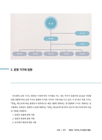 336 |337%uc81c6%uc7a5 %u300c%uc219%uc6b0%ud68c%u300d%uc758 %ucc3d%ub9bd%uacfc %ud65c%ub3d9%ud68c %uc7a5%uc0ac%ubb34%ucd1d%uc7a5%ubd80 %ud68c %uc7a5%uc0ac%ubb34%uc7a5%ucd1d%ubb34%uad6d%uc7a5%uc870%uc9c1%uad6d%uc7a5%uc12d%uc678%uad6d%uc7a5%uc5ec%uc131%uad6d%uc7a5%uccad%ub144%uad6d%uc7a5%uc219%uc6b0%ud68c%uc758 %uc6b4%uc601 %uae30%uad6c%ub294 %ud68c%uc7a5%ub2e8 %uad6c%uc131%uc5d0 %ub530%ub77c %uc2dc%uae30%ubcc4%ub85c %uc5b4%ub290 %uc815%ub3c4 %ucc28%uc774%uac00 %uc788%uaca0%uc9c0%ub9cc 2016%ub144 %uc0ac%ub2e8%ubc95%uc778%ud654 %uc804%ud658%uc5d0 %ub530%ub77c %uc6b4%uc601 %uae30%uad6c%ub85c %ucd1d%ud68c%uc640 %uc774%uc0ac%ud68c, %uc0ac%ubb34%ucc98, %uc9c0%ud68c %ub4f1%uc744 %ub450%uace0 %uc788%ub2e4. %uc774 %uc911 %ucd5c%uace0 %uc758%uacb0 %uae30%uad6c%ub294%u300e%uc815%uad00%u300f %uc81c15%uc870%uc5d0 %ub530%ub978 %ucd1d%ud68c%ub85c%uc11c %uc6d0%uce59%uc801%uc73c%ub85c %ub9e4%ub144 5%uc6d4%uc5d0 %uac1c%ucd5c%ub418%ub294 %uc815%uae30%ucd1d%ud68c%uc640 %uc218%uc2dc%ub85c %uac1c%ucd5c%ub418%ub294 %uc784%uc2dc%ucd1d%ud68c%ub85c %uad6c%ubd84%ub41c%ub2e4. %ucd1d%ud68c%uc758 %uc18c%uc9d1%uc5d0 %ub300%ud574%uc11c%ub294 %u300e%uc815%uad00%u300f %uc81c16%uc870%uc5d0 %uba85%uc2dc%ub418%uc5b4 %uc788%uc73c%uba70 %uc81c17%uc870%uc5d0 %ub530%ub77c %ub2e4%uc74c%uc758 %uc0ac%ud56d%uc744 %uc758%uacb0%ud55c%ub2e4.1. %uc784%uc6d0%uc758 %uc120%ucd9c%uc5d0 %uad00%ud55c %uc0ac%ud56d 2. %uc815%uad00%uc758 %ubcc0%uacbd%uc5d0 %uad00%ud55c %uc0ac%ud56d3. %uc219%uc6b0%ud68c%uc758 %ud574%uc0b0%uc5d0 %uad00%ud55c %uc0ac%ud56d 2. %uc6b4%uc601 %uae30%uad6c%uc640 %uc784%uc6d0