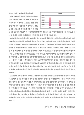 374 |375%uc81c7%uc7a5 %uc9c0%ub098%uc628 50%ub144, %uc0c8%ub85c%uc6b4 50%ub144!%ub2f4%uae08%uc758 %ub0a9%ubd80%uac00 %ubd88%uac00%ud53c%ud55c %uc2e4%uc815%uc774%uc5c8%ub2e4.%uc774%uc5d0 %ub530%ub77c %ud559%uc0ac %ubd80%uc9c0%ub97c %uac15%uc6d0%ub3c4%uc5d0 %uae30%ubd80%ud558%ub294 %ub300%uc2e0 %uac15%uc6d0%ub3c4%ub85c%ubd80%ud130 %ubb34%uc0c1 %uc0ac%uc6a9 %ud5c8%uac00%ub97c %ubc1b%uc544 %uc0ac%uc6a9%ud558%uae30%ub85c %uc758%uacb0%ud558%uc600%ub2e4. 1991%ub144 12%uc6d4 28%uc77c %uac15%uc6d0%ub3c4%uc5d0 %uae30%ubd80 %uc2e0%uccad%uc11c%ub97c %uc81c%ucd9c%ud558%uc600%ub2e4. 1992%ub144 2%uc6d4 18%uc77c %uc18c%uc720%uad8c %uc774%uc804 %ub4f1%uae30%ub97c %uac70%uccd0 1992%ub144 4%uc6d4 6%uc77c%uc5d0 %uac15%uc6d0%ub3c4%ub85c%ubd80%ud130 1992%ub144 2%uc6d4 18%uc77c%ubd80%ud130 2012%ub144 2%uc6d4 17%uc77c%uae4c%uc9c0 20%ub144%uc744 %uc0ac%uc6a9 %uae30%uac04%uc73c%ub85c %ud558%ub294 %ubb34%uc0c1 %uc0ac%uc6a9 %ud5c8%uac00%ub97c %ubc1b%uac8c %ub418%uc5c8%ub2e4. %uc774%ud6c4 %uc5f0%uc7a5%uc744 %ud1b5%ud574 %ud604%uc7ac%uc5d0 %uc774%ub974%uace0 %uc788%ub2e4. %uc6b0%ub9ac%ub098%ub77c%uc758 %uae09%uaca9%ud55c %uc120%uc9c4%ud654%uc5d0 %ub530%ub978 %uc0ac%uc0dd%ub4e4%uc758 %ub208%ub192%uc774%uc5d0 %ub9de%ucdb0 %uc2dc%uc124%ub3c4 %uc9c0%uc18d%uc801%uc73c%ub85c %uac1c%uc120%ud558%uc600%ub2e4. %ud2b9%ud788, 2000%ub144%uc5d0 %ud070 %uc804%ud658%uc810%uc744 %ub9de%uc774%ud558%uac8c %ub418%ub294 %uacc4%uae30%uac00 %uc788%uc5c8%ub2e4. %uadf8%ud574 11%uc6d4 25%uc77c, %uc219%uc6b0%ud68c %uc815%uae30%ucd1d%ud68c%ub97c %uae30%ud558%uc5ec %uae40%uc9c4%uc120 %uc774%uc0ac%uc7a5(%uc81c32~34%ub300 %ub3c4%uc9c0%uc0ac)%uc774 %ucde8%uc784 %ud6c4 %ucc98%uc74c%uc73c%ub85c %uac15%uc6d0%ud559%uc0ac%ub97c %ubc29%ubb38%ud558%uc5ec %uae30%ub150%uc2dd%uc218%ub97c %ud55c %ud6c4 %uc219%uc6b0%ud68c%uc6d0 %ubc0f %uc0ac%uc0dd%ub4e4%uacfc %ub300%ud654%uc758 %uc2dc%uac04%uc744 %uac00%uc84c%ub2e4. %uc774 %uc790%ub9ac%uc5d0%uc11c %uc0ac%uc0dd%ub4e4%uc740 %uc5ec%ud559%uc0ac%uc758 %ud655%ucda9, %uc9c0%ud558%uc5d0 %uc788%ub294 %ub3c5%uc11c%uc2e4 %uc774%uc804, %uaca8%uc6b8 %ubc29%ud559 %uc911 %uac1c%uc0ac %ub4f1%uc744 %uac74%uc758%ud558%uc600%ub2e4. %uc774%uc5d0 %ub530%ub77c 2000%ub144 %uaca8%uc6b8 %ubc29%ud559 %uc911 %ud559%uc0ac%ub97c %uac1c%uc0ac%ud558%uc600%uc73c%uba70 %ub3c4%ube44 1,125%ubc31%ub9cc %uc6d0%uc744 %ud22c%uc790%ud558%uc5ec 2002%ub144 %uc9c0%ud558 %ub3c5%uc11c%uc2e4%uc744 %ud604%uc7ac%uc758 %uc704%uce58%uc778 %uc2dd%ub2f9 %uc704%uce35%uc5d0 %uc2e0%ucd95%ud558%uc600%ub2e4. %ub610%ud55c %uc5ec%ud559%uc0ac(%ud604 %ub09c%uc124%ud5cc%uad00)%uac00 %uc9c0%uc0c1 4%uce35%uc5d0 %uc5f0%uba74%uc801 856.68%u33a1, 48%uba85 %uc218%uc6a9 %uaddc%ubaa8%ub85c %uc900%uacf5%ub418%uc5b4 2003%ub144%ubd80%ud130%ub294 %ub0a8%u00b7%ub140 %uc815%uc6d0%uc774 %ub300%ub4f1%ud55c %uc218%uc900%uc774 %ub418%uc5c8%ub2e4. %ud55c%ud3b8, 2001%ub144 9%uc6d4 25%uc77c %uc7ac%ub2e8 %uba85%uce6d%uc744 %u300c%uc0c8%uac15%uc6d0%uc7a5%ud559%ud68c%u300d%uc5d0%uc11c %u300c%uac15%uc6d0%uc778%uc7ac%uc721%uc131%uc7ac%ub2e8%u300d%uc73c%ub85c %uac1c%ud3b8%ud558%ub294 %ub4f1 2001%ub144%uacfc 2002%ub144%uc740 %uc6b4%uc601 %uc870%uc9c1%uc758 %uac1c%ud3b8, %uc6b4%uc601 %uc778%ub825%uc758 %uad50%uccb4, %ud559%uc0ac %uc2dc%uc124%uc758 %ud655%uc7a5 %ub4f1 %ubcc0%ud654%uc758 %uc2dc%ub300%ub97c %uc608%uace0%ud558%ub294 %uc804%ud658%uae30%uc600%ub2e4. 2005%ub144 %uac15%uc6d0%ud559%uc0ac %uc124%ub9bd 30%uc8fc%ub144%uc744 %ub9de%uc774%ud558%uc5ec %ub2f9%uc2dc %uc1a1%uc7ac%ud544 %uc7ac%ub2e8 %ucd1d%ubb34%uacfc%uc7a5%uc774 %uc9d1%ud544%ud55c %u300c%uac15%uc6d0%ud559%uc0ac 30%ub144%uc0ac%u300d%uac00 %ud3b8%ucc2c%ub418%uc5b4 %uc9c0%uae08%uae4c%uc9c0 %ud559%uc0ac%uc758 %uadc0%uc911%ud55c %uc0ac%ub8cc%ub85c %ub0a8%uc544 %uc788%ub2e4.2000%ub144%ub300 %uc2dc%uc791%ub41c %ubcc0%ud654%uc758 %uc0c8%ubc14%ub78c%uc740 %uac15%uc6d0%ud559%uc0ac 40%uc8fc%ub144%uc744 %ub9de%uc774%ud55c 2015%ub144%uc5d0 %ud601%uc2e0%uc801 %uc131%uacfc%ub85c %uc774%uc5b4%uc84c%ub2e4. %uccab %ubc88%uc9f8 %uc131%uacfc%ub294 204%uba85%uc744 %uc218%uc6a9%ud558%ub294 %uc81c2 %uac15%uc6d0%ud559%uc0ac %uac74%ub9bd(%ub3c4%ubd09%uad6c %ucc3d2%ub3d9)%uc774%ub2e4. %ub3c4%ubd09%uad6c %uc18c%uc7ac%uc758 %ud559%uc0ac%uac00 2016%ub144%ubd80%ud130 %uc6b4%uc601%ub428%uc73c%ub85c%uc368 %uc0ac%uc0dd%ub4e4%uc758 %uc218%ud61c %ud655%ub300%ub294 %ubb3c%ub860 %ud1b5%ud559 %ubd88%ud3b8%uc774 %ub300%ud3ed %uac10%uc18c%ub418%uc5c8%ub2e4. %ub450 %ubc88%uc9f8%ub294 %uad00%uc545%ud559%uc0ac%uc758 %ub2e4%ubaa9%uc801 %uc2dc%uc124%uc778 %ubbf8%ub798%uad00 %uc900%uacf5%uc774%ub2e4. %uc774%ub85c%uc368 %ud559%uc0ac %uc8fc%uad00%uc758 %uac01%uc885 %ud589%uc0ac, %ud68c%uc758, %uad50%uc721 %ub4f1%uc744 %uc704%ud55c %uc81c%ubc18 %uc5ec%uac74 %uac1c%uc120%uc774 %ube44%uc57d%uc801%uc73c%ub85c %uc774%ub8e8%uc5b4%uc84c%ub2e4. %uc138 %ubc88%uc9f8%ub294 %ud559%uc0ac %uc720%ud734%ubd80%uc9c0%uc5d0 %ud0dc%uc591%uad11 %ubc1c%uc804%uc2dc%uc124(100.8kw) %uc900%uacf5%uc774%ub2e4. %uc774 %uc2dc%uc124%uc740 %uc5d0%ub108%uc9c0 %ube44%uc6a9%uc744 %uc808%uac10%ud558%ub3c4%ub85d %ud574 %uc8fc%uc5c8%ub2e4. %ub610%ud55c, %uc774 %uc2dc%uc124%uc5d0 %uad6d%ube44%uc640 %ub3c4%ube44%uac00 %uac01%uac01 1%uc5b5 6%ucc9c%ub9cc %uc6d0 %ud22c%uc785%ub418%uc5c8%uc73c%uba70, %uc544%ub798 %ud45c%uc640 %uac19%uc774 %uc5f0%uac04 6%ucc9c 6%ubc31%ub9cc %uc6d0%uc758 %uc5d0%ub108%uc9c0 %ube44%uc6a9%uc774 5%ucc9c 9%ubc31%ub9cc %uc6d0 %uc218%uc900%uc73c%ub85c %uc808%uc57d%ub418%uc5c8%ub2e4. %ub2f9%uc2dc %uc804%uae30%ub8cc %uc778%uc0c1 %ub4f1%uc744 %uac10%uc548%ud55c%ub2e4%uba74 %uc5f0%uac04 10%ubc31%ub9cc %uc6d0 %uc774%uc0c1 %uc608%uc0b0%uc744 %uc808%uac10%ud558%ub294 %ud6a8%uacfc%ub97c %uac70%ub454 %uc148%uc774%ub2e4. 20142015%uc218%ub3c4%uad11%uc5f4%ube44201668,00066,00064,00062,00060,00058,00056,000