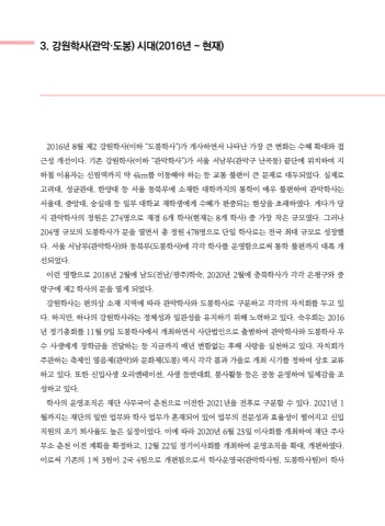 3. %uac15%uc6d0%ud559%uc0ac(%uad00%uc545%u00b7%ub3c4%ubd09) %uc2dc%ub300(2016%ub144 ~ %ud604%uc7ac) 2016%ub144 8%uc6d4 %uc81c2 %uac15%uc6d0%ud559%uc0ac(%uc774%ud558 %u201c%ub3c4%ubd09%ud559%uc0ac%u201d)%uac00 %uac1c%uc0ac%ud558%uba74%uc11c %ub098%ud0c0%ub09c %uac00%uc7a5 %ud070 %ubcc0%ud654%ub294 %uc218%ud61c %ud655%ub300%uc640 %uc811%uadfc%uc131 %uac1c%uc120%uc774%ub2e4. %uae30%uc874 %uac15%uc6d0%ud559%uc0ac(%uc774%ud558 %u201c%uad00%uc545%ud559%uc0ac%u201d)%uac00 %uc11c%uc6b8 %uc11c%ub0a8%ubd80(%uad00%uc545%uad6c %ub09c%uace1%ub3d9) %ub05d%ub2e8%uc5d0 %uc704%uce58%ud558%uc5ec %uc9c0%ud558%ucca0 %uc774%uc6a9%uc790%ub294 %uc2e0%ub9bc%uc5ed%uae4c%uc9c0 %uc57d 4km%ub97c %uc774%ub3d9%ud574%uc57c %ud558%ub294 %ub4f1 %uad50%ud1b5 %ubd88%ud3b8%uc774 %ud070 %ubb38%uc81c%ub85c %ub300%ub450%ub418%uc5c8%ub2e4. %uc2e4%uc81c%ub85c %uace0%ub824%ub300, %uc131%uade0%uad00%ub300, %ud55c%uc591%ub300 %ub4f1 %uc11c%uc6b8 %ub3d9%ubd81%ubd80%uc5d0 %uc18c%uc7ac%ud55c %ub300%ud559%uae4c%uc9c0%uc758 %ud1b5%ud559%uc774 %ub9e4%uc6b0 %ubd88%ud3b8%ud558%uc5ec %uad00%uc545%ud559%uc0ac%ub294 %uc11c%uc6b8%ub300, %uc911%uc559%ub300, %uc22d%uc2e4%ub300 %ub4f1 %uc77c%ubd80 %ub300%ud559%uad50 %uc7ac%ud559%uc0dd%uc5d0%uac8c %uc218%ud61c%uac00 %ud3b8%uc911%ub418%ub294 %ud604%uc0c1%uc744 %ucd08%ub798%ud558%uc600%ub2e4. %uac8c%ub2e4%uac00 %ub2f9%uc2dc %uad00%uc545%ud559%uc0ac%uc758 %uc815%uc6d0%uc740 274%uba85%uc73c%ub85c %uc7ac%uacbd 6%uac1c %ud559%uc0ac(%ud604%uc7ac%ub294 8%uac1c %ud559%uc0ac) %uc911 %uac00%uc7a5 %uc791%uc740 %uaddc%ubaa8%uc600%ub2e4. %uadf8%ub7ec%ub098 204%uba85 %uaddc%ubaa8%uc758 %ub3c4%ubd09%ud559%uc0ac%uac00 %ubb38%uc744 %uc5f4%uba74%uc11c %ucd1d %uc815%uc6d0 478%uba85%uc73c%ub85c %ub2e8%uc77c %ud559%uc0ac%ub85c%ub294 %uc804%uad6d %ucd5c%ub300 %uaddc%ubaa8%ub85c %uc131%uc7a5%ud588%ub2e4. %uc11c%uc6b8 %uc11c%ub0a8%ubd80(%uad00%uc545%ud559%uc0ac)%uc640 %ub3d9%ubd81%ubd80(%ub3c4%ubd09%ud559%uc0ac)%uc5d0 %uac01%uac01 %ud559%uc0ac%ub97c %uc6b4%uc601%ud568%uc73c%ub85c%uc368 %ud1b5%ud559 %ubd88%ud3b8%uae4c%uc9c0 %ub300%ud3ed %uac1c%uc120%ub418%uc5c8%ub2e4. %uc774%ub7f0 %uc601%ud5a5%uc73c%ub85c 2018%ub144 2%uc6d4%uc5d0 %ub0a8%ub3c4(%uc804%ub0a8/%uad11%uc8fc)%ud559%uc219, 2020%ub144 2%uc6d4%uc5d0 %ucda9%ubd81%ud559%uc0ac%uac00 %uac01%uac01 %uc740%ud3c9%uad6c%uc640 %uc911%ub791%uad6c%uc5d0 %uc81c2 %ud559%uc0ac%uc758 %ubb38%uc744 %uc5f4%uac8c %ub418%uc5c8%ub2e4.%uac15%uc6d0%ud559%uc0ac%ub294 %ud3b8%uc758%uc0c1 %uc18c%uc7ac %uc9c0%uc5ed%uc5d0 %ub530%ub77c %uad00%uc545%ud559%uc0ac%uc640 %ub3c4%ubd09%ud559%uc0ac%ub85c %uad6c%ubd84%ud558%uace0 %uac01%uac01%uc758 %uc790%uce58%ud68c%ub97c %ub450%uace0 %uc788%ub2e4. %ud558%uc9c0%ub9cc, %ud558%ub098%uc758 %uac15%uc6d0%ud559%uc0ac%ub77c%ub294 %uc815%uccb4%uc131%uacfc %uc77c%uad00%uc131%uc744 %uc720%uc9c0%ud558%uae30 %uc704%ud574 %ub178%ub825%ud558%uace0 %uc788%ub2e4. %uc219%uc6b0%ud68c%ub294 2016%ub144 %uc815%uae30%ucd1d%ud68c%ub97c 11%uc6d4 9%uc77c %ub3c4%ubd09%ud559%uc0ac%uc5d0%uc11c %uac1c%ucd5c%ud558%uba74%uc11c %uc0ac%ub2e8%ubc95%uc778%uc73c%ub85c %ucd9c%ubc94%ud558%uc5ec %uad00%uc545%ud559%uc0ac%uc640 %ub3c4%ubd09%ud559%uc0ac %uc6b0%uc218 %uc0ac%uc0dd%uc5d0%uac8c %uc7a5%ud559%uae08%uc744 %uc804%ub2ec%ud558%ub294 %ub4f1 %uc9c0%uae08%uae4c%uc9c0 %ub9e4%ub144 %ubcc0%ud568%uc5c6%ub294 %ud6c4%ubc30 %uc0ac%ub791%uc744 %uc2e4%ucc9c%ud558%uace0 %uc788%ub2e4. %uc790%uce58%ud68c%uac00 %uc8fc%uad00%ud558%ub294 %ucd95%uc81c%uc778 %uc5f4%uc74c%uc81c(%uad00%uc545)%uc640 %ubb38%ud654%uc81c(%ub3c4%ubd09) %uc5ed%uc2dc %uac01%uac01 %ubd04%uacfc %uac00%uc744%ub85c %uac1c%ucd5c %uc2dc%uae30%ub97c %uc815%ud558%uc5ec %uc0c1%ud638 %uad50%ub958%ud558%uace0 %uc788%ub2e4. %ub610%ud55c %uc2e0%uc785%uc0ac%uc0dd %uc624%ub9ac%uc5d4%ud14c%uc774%uc158, %uc0ac%uc0dd %ub4f1%ubc18%ub300%ud68c, %ubd09%uc0ac%ud65c%ub3d9 %ub4f1%uc740 %uacf5%ub3d9 %uc6b4%uc601%ud558%uc5ec %uc77c%uccb4%uac10%uc744 %uc870%uc131%ud558%uace0 %uc788%ub2e4.%ud559%uc0ac%uc758 %uc6b4%uc601%uc870%uc9c1%uc740 %uc7ac%ub2e8 %uc0ac%ubb34%uad6d%uc774 %ucd98%ucc9c%uc73c%ub85c %uc774%uc804%ud55c 2021%ub144%uc744 %uc804%ud6c4%ub85c %uad6c%ubd84%ud560 %uc218 %uc788%ub2e4. 2021%ub144 1%uc6d4%uae4c%uc9c0%ub294 %uc7ac%ub2e8%uc758 %uc77c%ubc18 %uc5c5%ubb34%uc640 %ud559%uc0ac %uc5c5%ubb34%uac00 %ud63c%uc7ac%ub418%uc5b4 %uc788%uc5b4 %uc5c5%ubb34%uc758 %uc804%ubb38%uc131%uacfc %ud6a8%uc728%uc131%uc774 %ub5a8%uc5b4%uc9c0%uace0 %uc2e0%uc785%uc9c1%uc6d0%uc758 %uc870%uae30 %ud1f4%uc0ac%uc728%ub3c4 %ub192%uc740 %uc2e4%uc815%uc774%uc5c8%ub2e4. %uc774%uc5d0 %ub530%ub77c 2020%ub144 6%uc6d4 23%uc77c %uc774%uc0ac%ud68c%ub97c %uac1c%ucd5c%ud558%uc5ec %uc7ac%ub2e8 %uc8fc%uc0ac%ubb34%uc18c %ucd98%ucc9c %uc774%uc804 %uacc4%ud68d%uc744 %ud655%uc815%ud558%uace0, 12%uc6d4 22%uc77c %uc815%uae30%uc774%uc0ac%ud68c%ub97c %uac1c%ucd5c%ud558%uc5ec %uc6b4%uc601%uc870%uc9c1%uc744 %ud655%ub300, %uac1c%ud3b8%ud558%uc600%ub2e4. %uc774%ub85c%uc368 %uae30%uc874%uc758 1%ucc98 3%ud300%uc774 2%uad6d 4%ud300%uc73c%ub85c %uac1c%ud3b8%ub428%uc73c%ub85c%uc11c %ud559%uc0ac%uc6b4%uc601%uad6d(%uad00%uc545%ud559%uc0ac%ud300, %ub3c4%ubd09%ud559%uc0ac%ud300)%uc774 %ud559%uc0ac