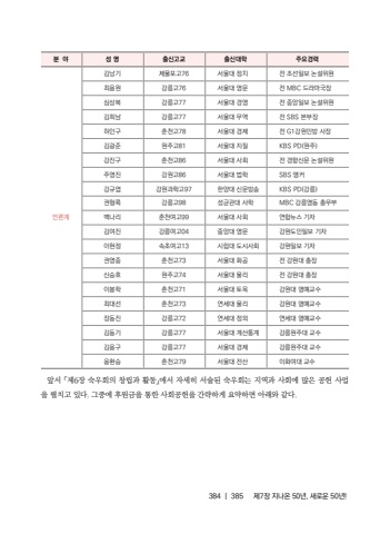 384 |385%uc81c7%uc7a5 %uc9c0%ub098%uc628 50%ub144, %uc0c8%ub85c%uc6b4 50%ub144!%uc5b8%ub860%uacc4%uae40%ub0ad%uae30%uc81c%ubb3c%ud3ec%uace076%uc11c%uc6b8%ub300 %uc815%uce58%uc804 %uc870%uc120%uc77c%ubcf4 %ub17c%uc124%uc704%uc6d0%ucd5c%uc6a9%uc6d0%uac15%ub989%uace076%uc11c%uc6b8%ub300 %uc601%ubb38%uc804 MBC %ub4dc%ub77c%ub9c8%uad6d%uc7a5%uc2ec%uc0c1%ubcf5%uac15%ub989%uace077%uc11c%uc6b8%ub300 %uacbd%uc601%uc804 %uc911%uc559%uc77c%ubcf4 %ub17c%uc124%uc704%uc6d0%uae40%ud76c%ub0a8%uac15%ub989%uace077%uc11c%uc6b8%ub300 %ubb34%uc5ed%uc804 SBS %ubcf8%ubd80%uc7a5 %ud5c8%uc778%uad6c%ucd98%ucc9c%uace078%uc11c%uc6b8%ub300 %uacbd%uc81c%uc804 G1%uac15%uc6d0%ubbfc%ubc29 %uc0ac%uc7a5%uae40%uad11%uc900%uc6d0%uc8fc%uace081%uc11c%uc6b8%ub300 %uc9c0%uc9c8KBS PD(%uc6d0%uc8fc)%uac15%uc9c4%uad6c%ucd98%ucc9c%uace086%uc11c%uc6b8%ub300 %uc0ac%ud68c%uc804 %uacbd%ud5a5%uc2e0%ubb38 %ub17c%uc124%uc704%uc6d0%uc8fc%uc601%uc9c4%uac15%uc6d0%uace086%uc11c%uc6b8%ub300 %ubc95%ud559SBS %uc575%ucee4%uac15%uaddc%uc5fd%uac15%uc6d0%uacfc%ud559%uace097%ud55c%uc591%ub300 %uc2e0%ubb38%ubc29%uc1a1KBS PD(%uac15%ub989)%uad8c%ud615%ub85d%uac15%ub989%uace098%uc131%uade0%uad00%ub300 %uc0ac%ud559MBC %uac15%ub989%uc601%ub3d9 %ucd1d%ubb34%ubd80%ubc31%ub098%ub9ac%ucd98%ucc9c%uc5ec%uace099%uc11c%uc6b8%ub300 %uc0ac%ud68c%uc5f0%ud569%ub274%uc2a4 %uae30%uc790%uae40%uc5ec%uc9c4%uac15%ub989%uc5ec%uace004%uc911%uc559%ub300 %uc601%ubb38%uac15%uc6d0%ub3c4%ubbfc%uc77c%ubcf4 %uae30%uc790%uc774%ud604%uc815%uc18d%ucd08%uc5ec%uace013%uc2dc%ub9bd%ub300 %ub3c4%uc2dc%uc0ac%ud68c%uac15%uc6d0%uc77c%ubcf4 %uae30%uc790%uad8c%uc601%uc911%ucd98%ucc9c%uace073%uc11c%uc6b8%ub300 %ud654%uacf5%uc804 %uac15%uc6d0%ub300 %ucd1d%uc7a5%uc2e0%uc2b9%ud638%uc6d0%uc8fc%uace074%uc11c%uc6b8%ub300 %ubb3c%ub9ac%uc804 %uac15%uc6d0%ub300 %ucd1d%uc7a5%uc774%ubd09%ud559%ucd98%ucc9c%uace071%uc11c%uc6b8%ub300 %ud1a0%ubaa9%uac15%uc6d0%ub300 %uba85%uc608%uad50%uc218%ucd5c%ub300%uc120%ucd98%ucc9c%uace073%uc5f0%uc138%ub300 %ubb3c%ub9ac%uac15%uc6d0%ub300 %uba85%uc608%uad50%uc218%uc7a5%ub3d9%uc9c4%uac15%ub989%uace072%uc5f0%uc138%ub300 %uc815%uc678%uc5f0%uc138%ub300 %uba85%uc608%uad50%uc218%uae40%ub3d9%uae30%uac15%ub989%uace077%uc11c%uc6b8%ub300 %uacc4%uc0b0%ud1b5%uacc4%uac15%ub989%uc6d0%uc8fc%ub300 %uad50%uc218%uae40%uc6a9%uad6c%uac15%ub989%uace077%uc11c%uc6b8%ub300 %uacbd%uc81c%uac15%ub989%uc6d0%uc8fc%ub300 %uad50%uc218%uc6a9%ud658%uc2b9%ucd98%ucc9c%uace079%uc11c%uc6b8%ub300 %uc804%uc0b0%uc774%ud654%uc5ec%ub300 %uad50%uc218%uc55e%uc11c %u300c%uc81c6%uc7a5 %uc219%uc6b0%ud68c%uc758 %ucc3d%ub9bd%uacfc %ud65c%ub3d9%u300d%uc5d0%uc11c %uc790%uc138%ud788 %uc11c%uc220%ub41c %uc219%uc6b0%ud68c%ub294 %uc9c0%uc5ed%uacfc %uc0ac%ud68c%uc5d0 %ub9ce%uc740 %uacf5%ud5cc %uc0ac%uc5c5%uc744 %ud3bc%uce58%uace0 %uc788%ub2e4. %uadf8%uc911%uc5d0 %ud6c4%uc6d0%uae08%uc744 %ud1b5%ud55c %uc0ac%ud68c%uacf5%ud5cc%uc744 %uac04%ub7b5%ud558%uac8c %uc694%uc57d%ud558%uba74 %uc544%ub798%uc640 %uac19%ub2e4.%ubd84 %uc57c%uc131 %uba85%ucd9c%uc2e0%uace0%uad50%ucd9c%uc2e0%ub300%ud559%uc8fc%uc694%uacbd%ub825