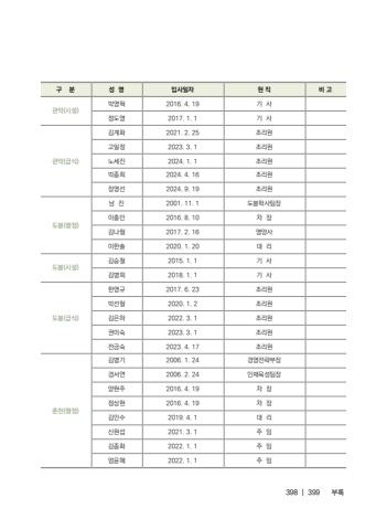 398 |399%ubd80%ub85d%uad00%uc545(%uc2dc%uc124)%ubc15%uc601%ud6012016. 4. 19%uae30 %uc0ac%uc815%ub3c4%uc6012017. 1. 1%uae30 %uc0ac%uad00%uc545(%uae09%uc2dd)%uae40%uacc4%ud6542021. 2. 25%uc870%ub9ac%uc6d0%uace0%uc77c%uc8152023. 3. 1%uc870%ub9ac%uc6d0%ub178%uc138%uc9c42024. 1. 1%uc870%ub9ac%uc6d0%ubc15%uc885%ud76c2024. 4. 16%uc870%ub9ac%uc6d0%uc7a5%uc601%uc1202024. 9. 19%uc870%ub9ac%uc6d0%ub3c4%ubd09(%ud589%uc815)%ub0a8 %uc9c42001. 11. 1%ub3c4%ubd09%ud559%uc0ac%ud300%uc7a5%uc774%ucda9%ubbfc2016. 8. 10%ucc28 %uc7a5%uae40%ub098%ud6152017. 2. 16%uc601%uc591%uc0ac%uc774%ud55c%uc1942020. 1. 20%ub300 %ub9ac%ub3c4%ubd09(%uc2dc%uc124)%uae40%uc2b9%ucca02015. 1. 1%uae30 %uc0ac%uae40%ubcd1%ud76c2018. 1. 1%uae30 %uc0ac%ub3c4%ubd09(%uae09%uc2dd)%ud55c%uc601%uaddc2017. 6. 23%uc870%ub9ac%uc6d0%ubc15%uc120%ud6152020. 1. 2%uc870%ub9ac%uc6d0%uae40%uc740%ud5582022. 3. 1%uc870%ub9ac%uc6d0%uad8c%ubbf8%uc2192023. 3. 1%uc870%ub9ac%uc6d0%uc804%uae08%uc2192023. 4. 17%uc870%ub9ac%uc6d0%ucd98%ucc9c(%ud589%uc815)%uae40%ubcd1%uae302006. 1. 24%uacbd%uc601%uc804%ub7b5%ubd80%uc7a5%uacbd%uc11c%uc5f02006. 2. 24%uc778%uc7ac%uc721%uc131%ud300%uc7a5%uc591%ud604%uc8fc2016. 4. 19%ucc28 %uc7a5%uc815%uc0c1%ud6042016. 4. 19%ucc28 %uc7a5%uae40%ubbfc%uc2182019. 4. 1%ub300 %ub9ac%uc2e0%uc6d0%uc12d2021. 3. 1%uc8fc %uc784%uae40%uc885%ud6542022. 1. 1%uc8fc %uc784%uc5c4%uc724%ud61c2022. 1. 1%uc8fc %uc784%uad6c %ubd84%uc131 %uba85%uc785%uc0ac%uc77c%uc790%ud604 %uc9c1%ube44 %uace0